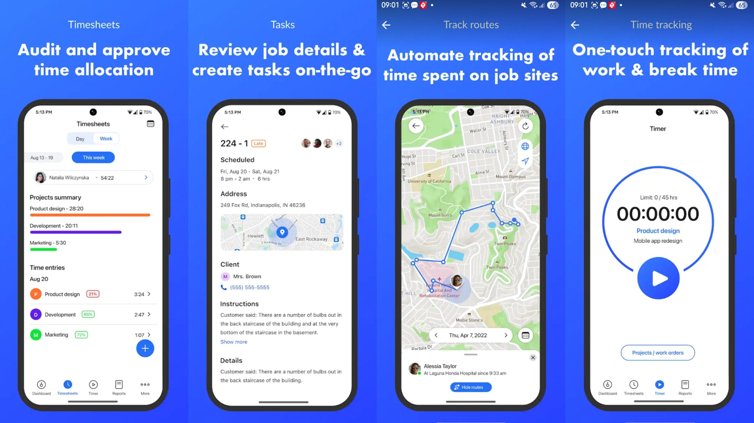 • Laporan waktu kerja yang mendetail.